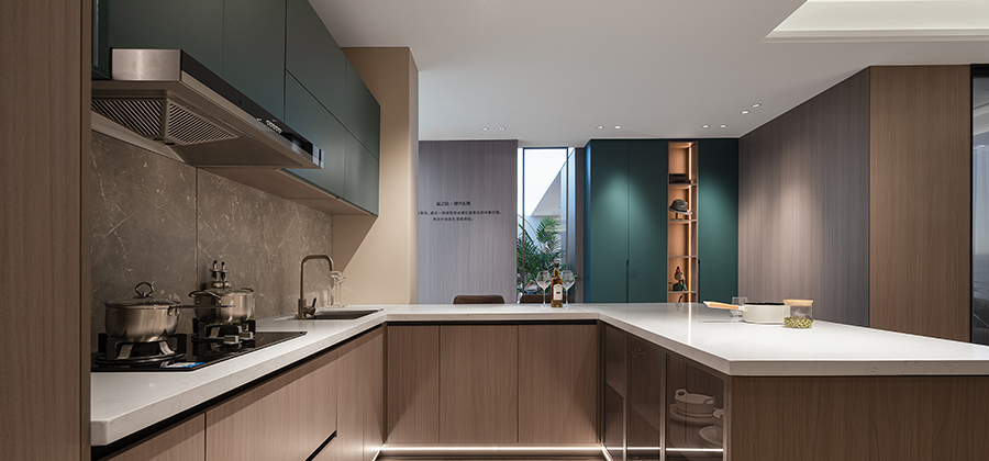 是指廚房中存放廚具以及做飯操作的平臺。由柜體、柜門、臺面、地腳、五金配件、功能配件、燈具等組成